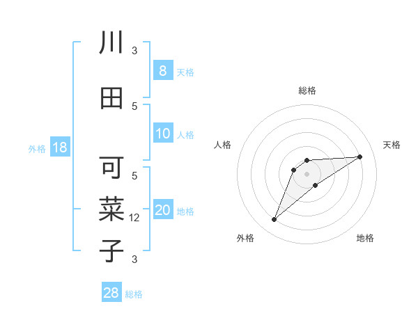 川田 可菜子さんを姓名の画数から五運を鑑定