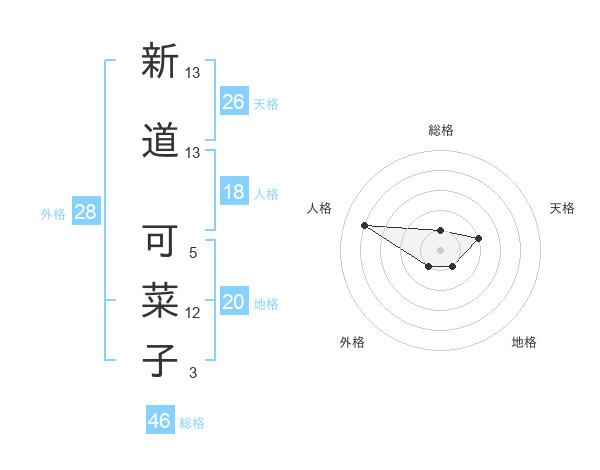 新道 可菜子さんの総格は46画の1点!