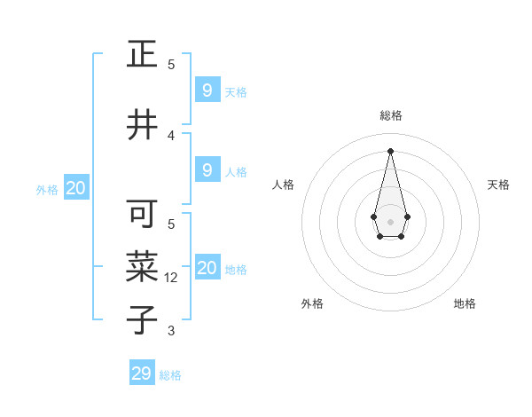 正井 可菜子さんを姓名の画数から五運を鑑定
