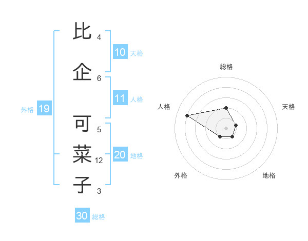 比企 可菜子さんの地格は20画の1点!