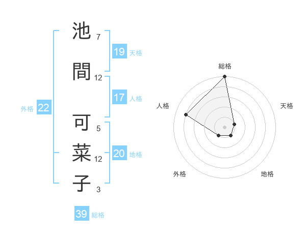 池間 可菜子さんを姓名の画数から五運を鑑定