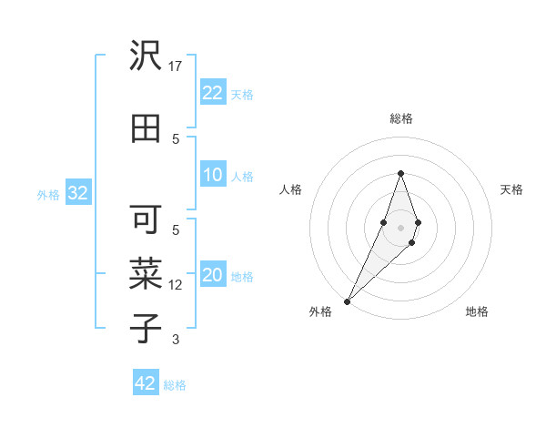 沢田 可菜子さんを姓名の画数から五運を鑑定