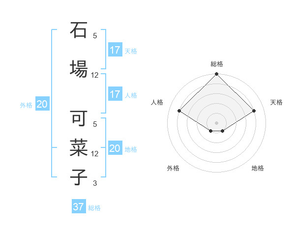 石場 可菜子さんの総格は37画の5点