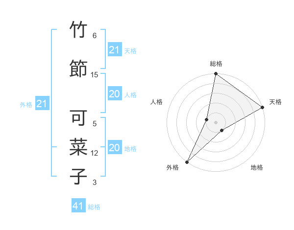 竹節 可菜子さんの外格は21画の5点!