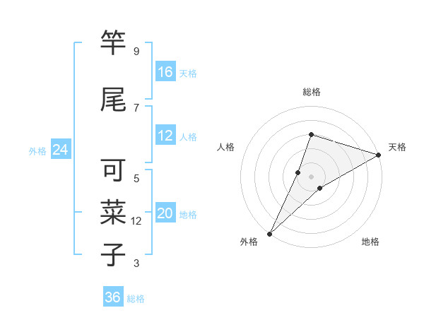 竿尾 可菜子さんの外格は24画の5点!