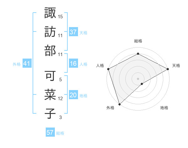 諏訪部 可菜子さんを姓名の画数から五運を鑑定