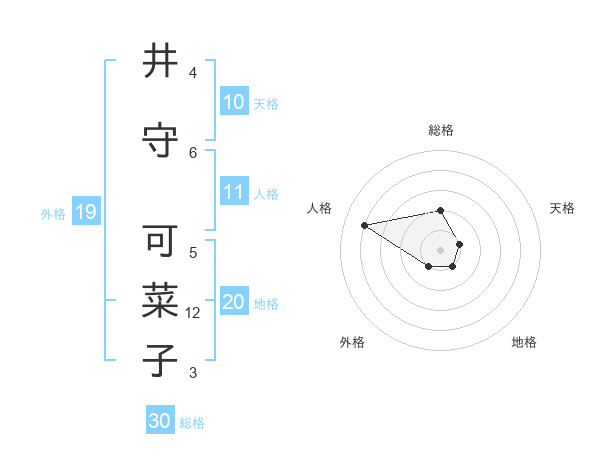 井守 可菜子さんを姓名の画数から五運を鑑定