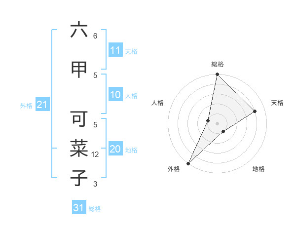 六甲 可菜子さんを姓名の画数から五運を鑑定