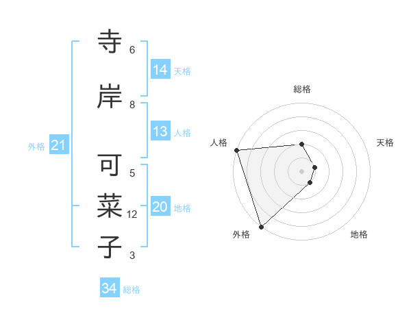寺岸 可菜子さんの外格は21画の5点!