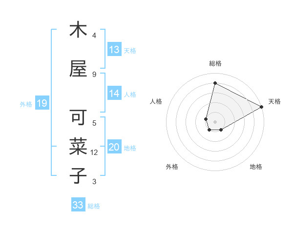 木屋 可菜子さんの天格は13画の5点!