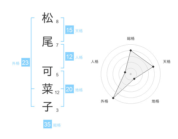 松尾 可菜子さんを姓名の画数から五運を鑑定