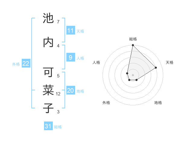 池内 可菜子さんを姓名の画数から五運を鑑定
