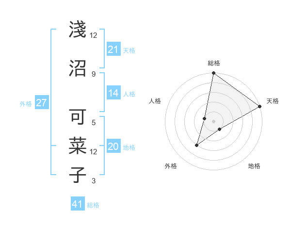 淺沼 可菜子さんを姓名の画数から五運を鑑定