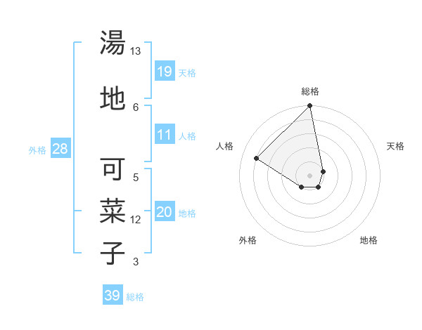 湯地 可菜子さんを姓名の画数から五運を鑑定