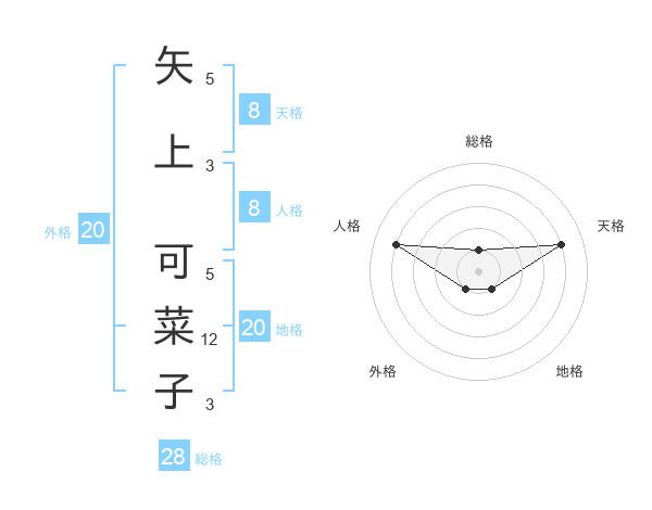 矢上 可菜子さんを姓名の画数から五運を鑑定