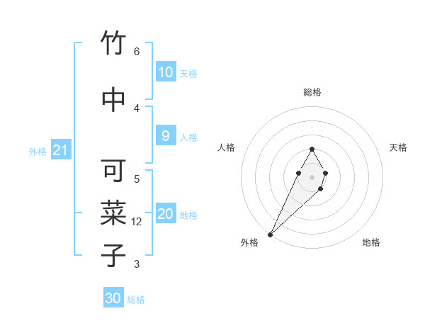 竹中 可菜子さんの外格は21画の5点!