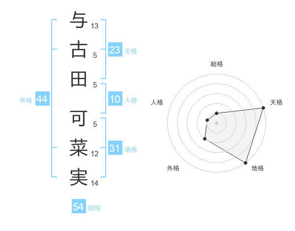 与古田 可菜実さんを姓名の画数から五運を鑑定