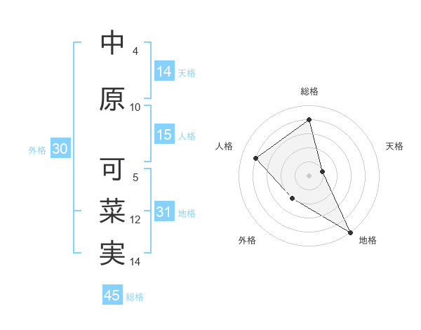 中原 可菜実さんを姓名の画数から五運を鑑定