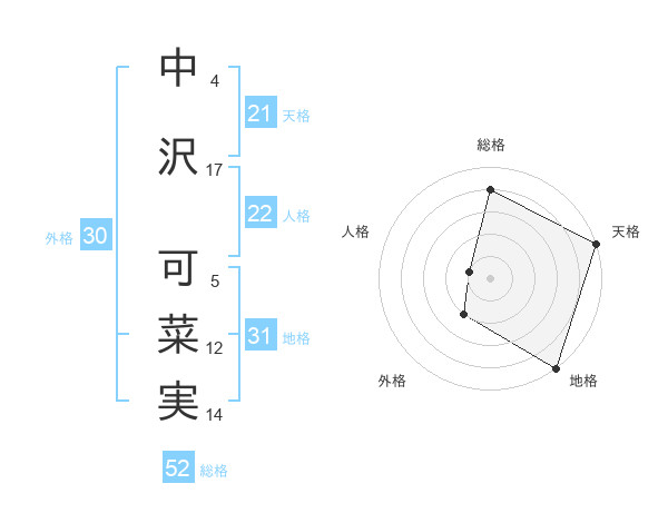 中沢 可菜実さんを姓名の画数から五運を鑑定