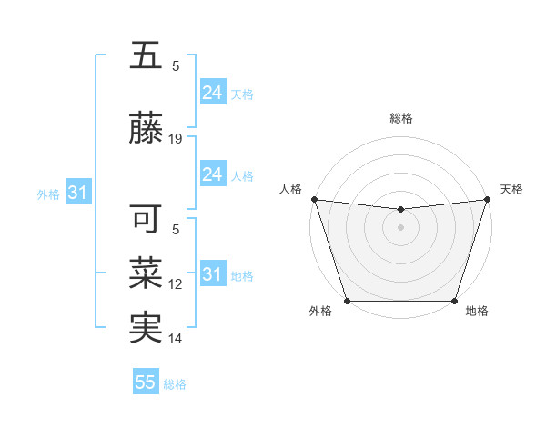 五藤 可菜実さんの天格は24画の5点!