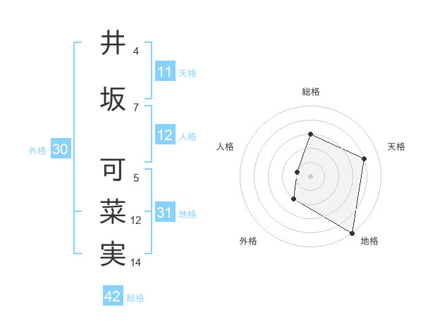 井坂 可菜実さんの総格は42画の3点!