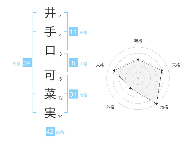 井手口 可菜実さんを姓名の画数から五運を鑑定