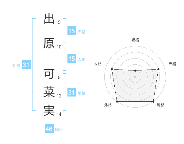 出原 可菜実さんを姓名の画数から五運を鑑定