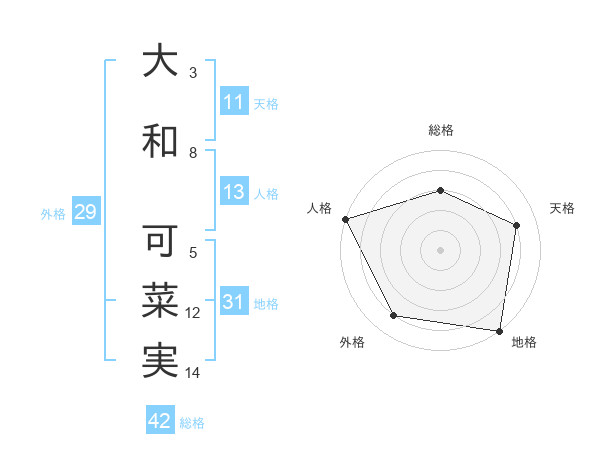 大和 可菜実さんを姓名の画数から五運を鑑定