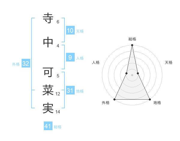 寺中 可菜実さんの総格は41画の5点!