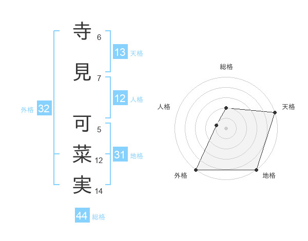 寺見 可菜実さんを姓名の画数から五運を鑑定