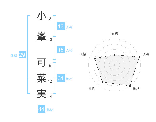 小峯 可菜実さんの天格は13画の5点!