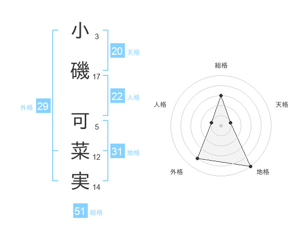 小磯 可菜実さんを姓名の画数から五運を鑑定