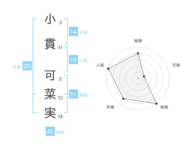 小貫 可菜実さんの地格は31画の5点!