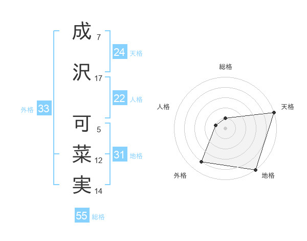 成沢 可菜実さんの天格は24画の5点!