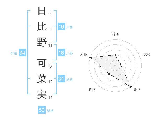 日比野 可菜実さんを姓名の画数から五運を鑑定