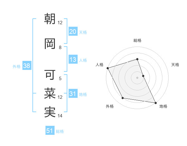 朝岡 可菜実さんの総格は51画の3点