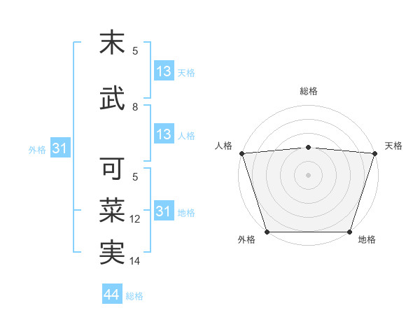 末武 可菜実さんを姓名の画数から五運を鑑定
