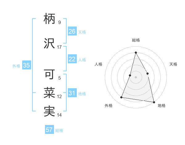 柄沢 可菜実さんを姓名の画数から五運を鑑定