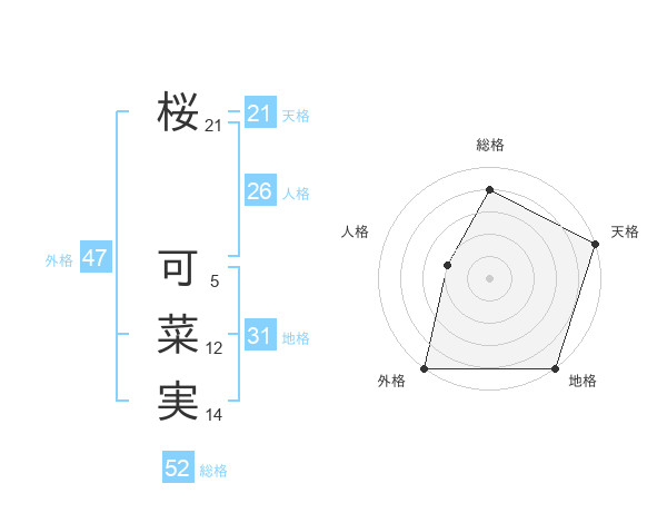 桜 可菜実さんを姓名の画数から五運を鑑定