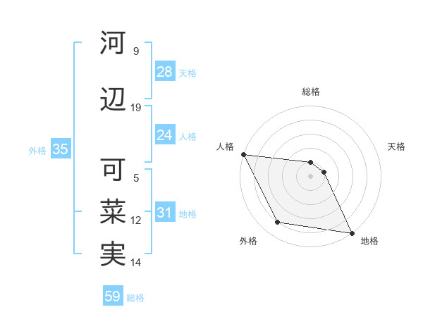 河辺 可菜実さんを姓名の画数から五運を鑑定