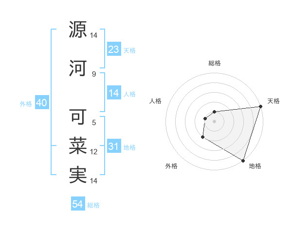 源河 可菜実さんの天格は23画の5点!