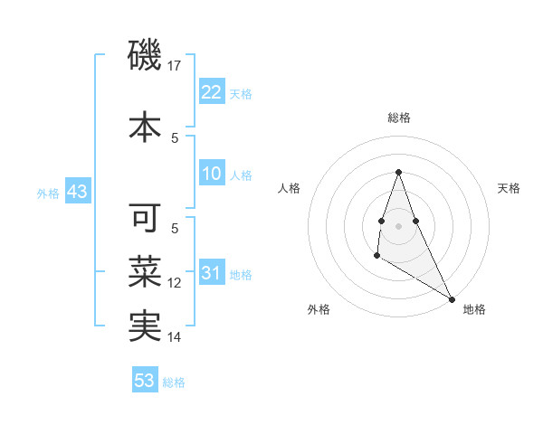 磯本 可菜実さんの総格は53画の3点!