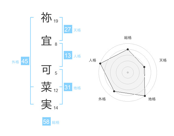 祢宜 可菜実さんを姓名の画数から五運を鑑定