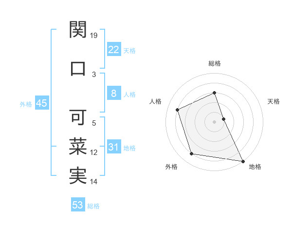 関口 可菜実さんを姓名の画数から五運を鑑定