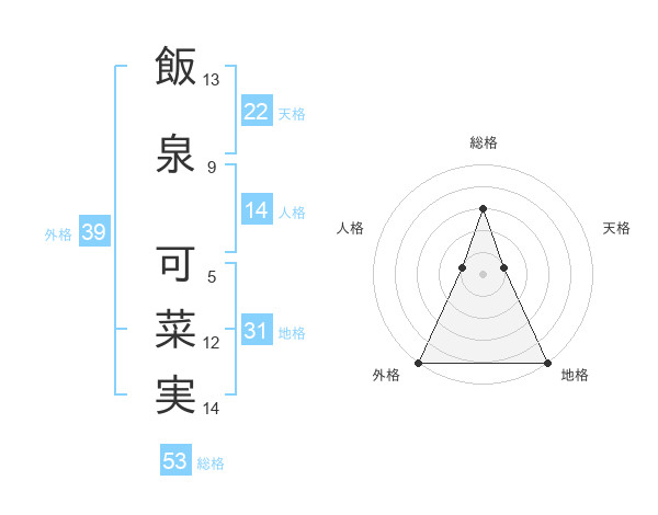 飯泉 可菜実さんの総格は53画の3点!