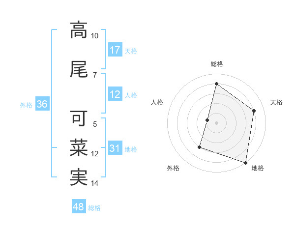 高尾 可菜実さんの天格は17画の4点!