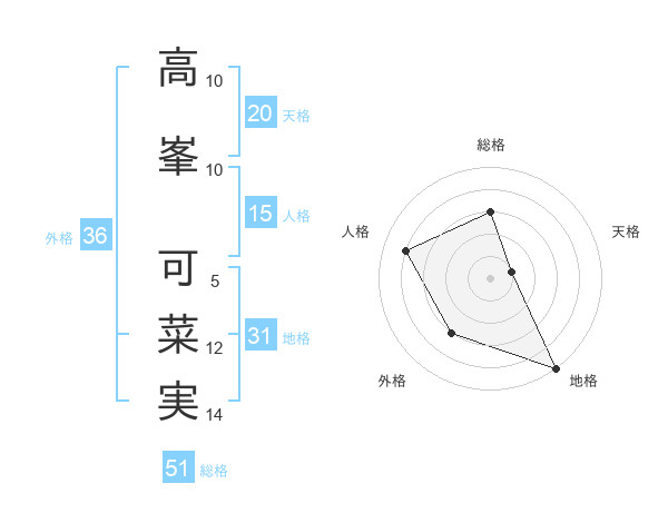 高峯 可菜実さんを姓名の画数から五運を鑑定