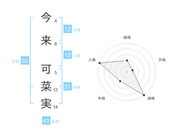 今来 可菜実さんを姓名の画数から五運を鑑定