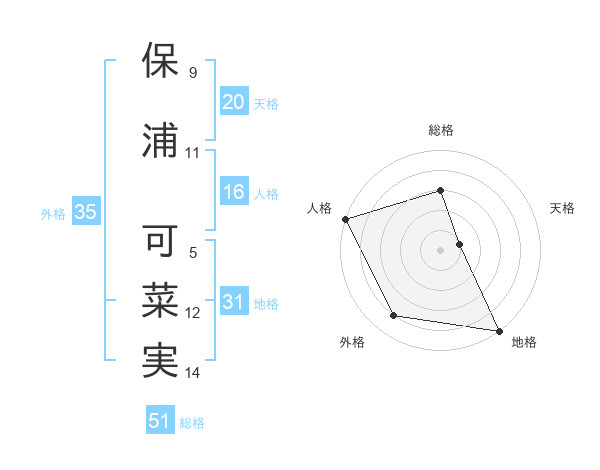 保浦 可菜実さんを姓名の画数から五運を鑑定