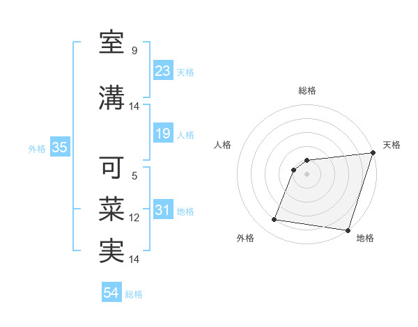 室溝 可菜実さんの天格は23画の5点!